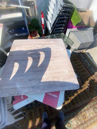 Típica mesa de bar. Se tiene que cambiar la madera de abajo que está podrida