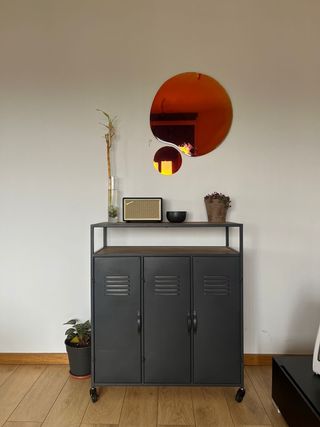 Para recoger en Sant Fost de Campsentelles. Mueble de estilo industrial con un diseño moderno y funcional. - Combinación de metal y madera. - Acabado en tonos grises y marrones. mueble - bar 80x90 cms