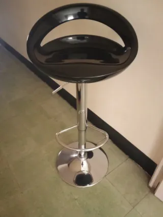 Silla de bar moderna con un diseño elegante. - Asiento y respaldo curvos. - Base redonda y estable. - Altura ajustable.