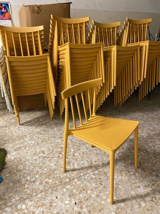 Solo quedan 5 sillas. apilables, ideales para negocios de hostelería como bares, restaurantes o cafeterías. 10€ / unidad - Diseño moderno y funcional. - Apilables para optimizar espacio. - Perfectas para uso en exteriores.