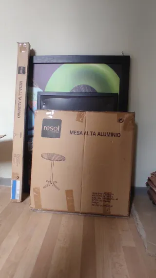 Practicamente nueva,solo se ha usado para poner encima un jarron,incluye 2 taburetes De la Cruzcampo,la vendo porque ya ha cumplido la funciòn por la que la compre - Diseño moderno con estructura metálica. - Superficie de madera con veta. - Ideal para espacios reducidos.