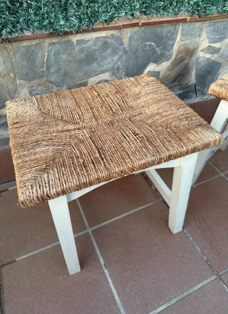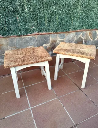 Dos banquetas madera con asiento de cuerda tejida a mano. # tanburete color blanco nordico mueble cocina mostrador retro vintage tamburete ratan rattan mimbre bambu rafia reposapies descalzadora descalzador armario habitación almacenaje centro recibidor espejo perchero tocador escritorio oficina cajonera comoda auxiliar salon moderno clásico ikea tv tele jardin comedor baño lavabo lampara cama canapé sofa sillón silla mesa vitrina aparador consola alto isla barra bar restaurante zapatero estante estantería cuadro pared pie cortina estor dormitorio cabecero cabezal mesita mesilla noche cadira taula antiguedades antiguo sala