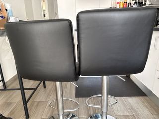 Conjunto de sillas de bar con diseño moderno y funcional. Son perfectas para cualquier espacio. - Altura regulable para mayor comodidad. - Base metálica plateada. - Tapicería de cuero negro. las dos por 50€/ NO LAS VENDO SEPARADO