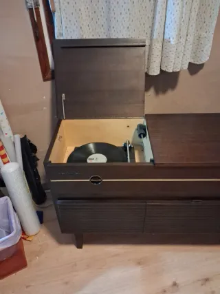 Mueble de musica de la marca vica modelo rg875et la radio funciona y el tocadiscos también, necesita repaso general pero esta muy entero ideal para restaurar o poner elementos modernos o mueble bar