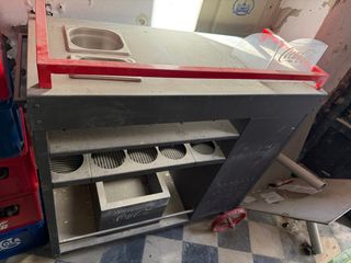 Carrito bar de Coca-Cola, perfecto para eventos en buen estado, no se ha usado. - Compartimentos para vasos y cubos. - Ruedas para fácil movilidad. -Incluye una bandeja inferior.
