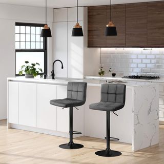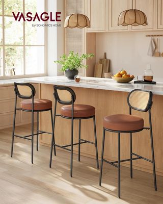 [Estilo y comodidad] Los taburetes EKHO de la Colección VASAGLE combinan PU texturizado y costuras refinadas. El asiento acolchado de espuma de 58D de 8 cm ofrece una experiencia de asiento cómoda. [Dimensiones] Set de 4 taburetes, altura 63 cm, dimensiones 49,5 x 49,5 cm. [Estabilidad] Patas de metal cónicas con pies ajustables para una estabilidad en suelos irregulares. [Limpieza] Tapizado en PU resistente al agua, fácil de limpiar. [Capacidad] Diseñados para adaptarse a personas de todas las alturas, estos taburetes combinan comodidad y versatilidad, perfectos para cualquier cocina.