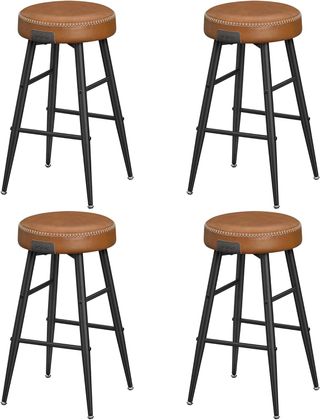Colección EKHO - Taburetes de Cocina, Set de 4 Taburetes Altos de Bar, Sillas de Cocina, PU con Costura, Moderno de Mediados de Siglo, Altura 63 cm, Fácil de Montar, Marrón Caramelo LBC280K01