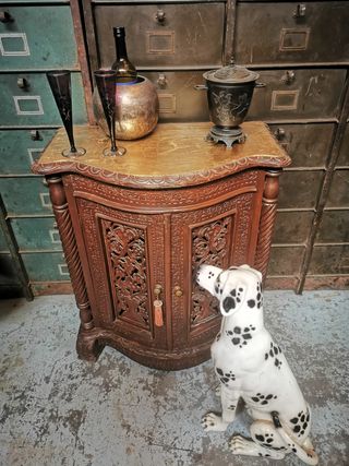 Instagram #janoradeco Mueble bar de madera tallada. Una preciosidad de pieza. Espectaculares tallas. Tiene un golpe en la parte trasera abajo, pero no influye en nada. Mirar última foto. Medidas 72 x 41 y 83 de alto