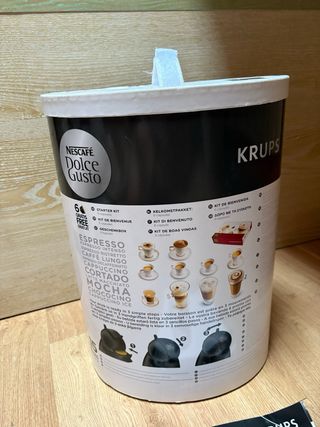 Caja cafetera Dolce Gusto de Krups, en perfecto estado. Incluye manual de instrucciones. No incluye la cafetera. Ideal para almacenar cosas o vender la cafetera en su caja. Tiene los cartones de dentro.