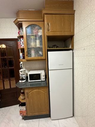 Bonita cocina de madera de haya en muy buen estado, muy bien cuidada , las puertas q no se ven están nuevas solo q las empecé a quitar y están guardadas , puedes venir a desmontarla y llevártela tu mismo,he decidido cambiarla por reforma integral d casa no porque este estropeada , en breve empezaremos la reforma y tendremos q desmontarla,1200€ negociables - Diseño clásico y elegante. - Ideal para espacios medianos. - Incluye muebles altos y bajos -vitrocerámica, mármol . (Regalo electrodomesticos en uso) Pongo fotos de medidas de la cocina los muebles son d 60x60 el de la pila d 90 . La decoración y cafetera no está a la venta..