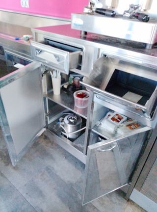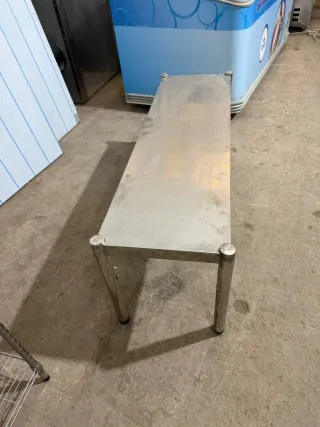 Mueble de acero inoxidable para cafetería. - Diseño moderno y funcional. - Superficie de trabajo resistente. - Compartimentos de almacenamiento integrados. Se vende por cierre de bar. Está en Torredembarra