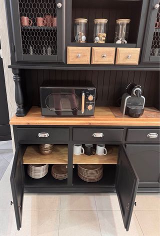 mueble de madera. muebles de madera en color negro (negro) con cajón para guardar accesorios . - Perfecto para organizar tu espacio de café. - Muebles las medidas están en una foto , esta nuevo y se puede usar para lo que quieras .