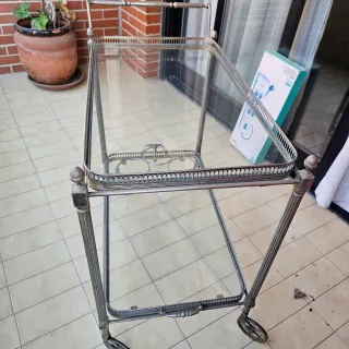 Mesa camarera antigua cristal y metal