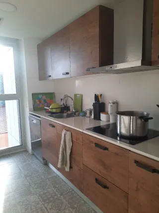 Conjunto de muebles de cocina con un diseño moderno y funcional. Acabado en madera con detalles metálicos. Incluye placa inducción, campana, fregadero,lavavajillas y muebles: 5 módulos de 60 cm x 40 cm arriba,2 módulos de 60cmx 60cm de cajones ,3 muebles de 60cmx60cm abajo.Condición indispensable desmontaje y transporte a cargo del comprador.A recoger a partir del 13 de abril.