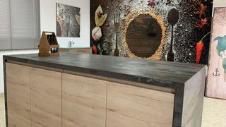 Muebles de cocina de exposición. Cocina recta de 350cm de longitud. Con isla de 180cm x 90cm de fondo, incluido el vuelo de la barra. Módulos bajos de 50cm + mueble placa de 90cm + mueble de cajones de 90cm + mueble fregadero de 60cm + mueble de 60cm. Muebles altos de 80cm y 120cm x 56cm de altura. Isla con dos muebles de 90cm de anchura. También incluida la campana, el fregadero y el grifo. (vitrocerámica no). Se regala la encimera de Silestone y Dekton, incluido el frente de la pared. No incluye desmontaje y entrega. Se encuentra en una segunda planta sin ascensor.