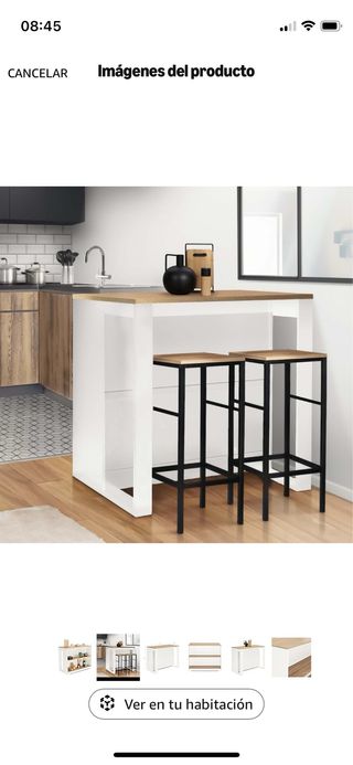 Mesa alta cocina madera y metal
