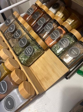 Organizador de especias de bambú para la cocina. Está en perfectas condiciones y en su caja - Ideal para organizar tus especias de forma eficiente y elegante. - Fabricado con bambú resistente y duradero. - Diseño compacto y funcional que se adapta a cualquier espacio de cocina.