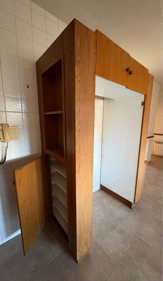 Armario de cocina. Es de madera. Es para encima de la nevera. Alargado y con una puerta. Precio 29 €.