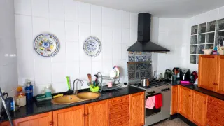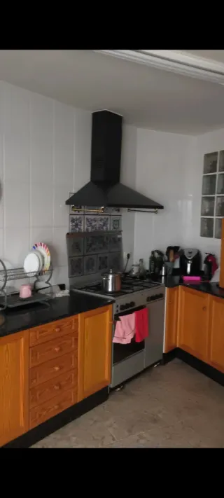 Conjunto de cocina completo con acabados en madera y encimera de granito. Todos los muebles están en buen estado menos las puertas debajo del fregadero que hay que poner los ganchos nuevos ya que están oxidados. Se vende junto al extractor, el lavaplatos y el horno (nevera, vitro y lavadora NO se venden). Tampoco se incluye en desmontaje en el precio. NO se negocia el precio (la encimera es de granito así que creo que vale bastante más de por lo que se vende todo).