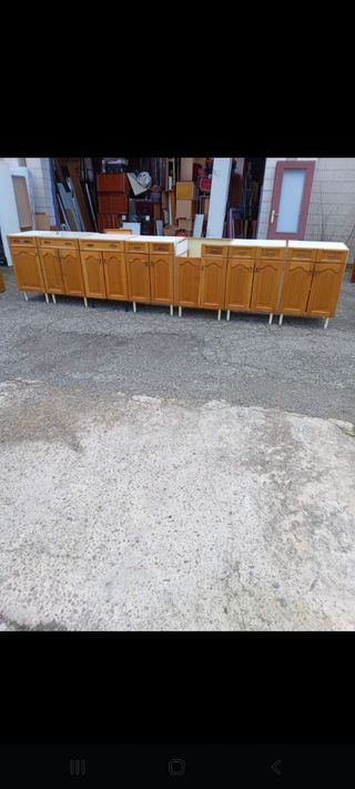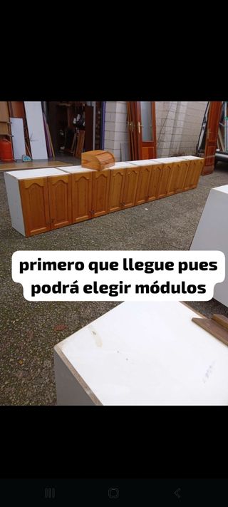 Se venden módulos de cocina en buen estado. Ideales para actualizar tu cocina. - Medidas: 70cm de ancho, 33cm de alto y 65cm de fondo. - Color marrón y blanco. - Precio: 14€ Tengo dos naves porque me dedico a la retirada de recogida de muebles y mudanzas por eso tengo muchísimas cosas cada noche subo más de 200 artículos en oferta en el estado del whatsapp me dices hola y te agrego también podrás ver porque buen pueblos paso y me podrás pedir cosas desde tu pueblo no te pierdas en el estado del whatsapp que pongo muchas ofertas repito dime hola y te agrego pasó por casi todos los pueblos de Ciudad real y recuerda también retiro