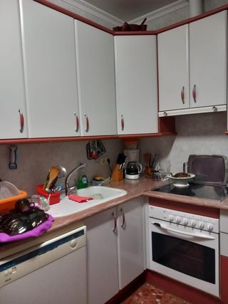 Conjunto de mobiliario de cocina con un diseño clásico y funcional. - Armarios superiores e inferiores. - Encimera con solo 1 mes de uso. - Fregadero. - Frontal de cocina con horno eléctrico y placa de gas. - Lavadora. - Extractor. - Termo de agua eléctrico de 50L. Se vende por reforma y falta de espacio.