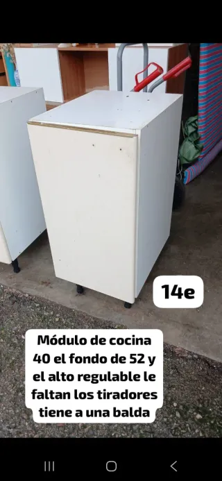 Oferta hasta el domingo. Módulo de cocina de madera con acabado en blanco. - Interior más pequeño. - Trasero sin balda. - Cajón un poquito más desgastado. El transporte algunas veces puede ser incluido depende de lo que me pidas tengo dos almacenes me puedes decir hola alguaza y así me puedes seguir cada noche subo más de 200 artículos en el whatsapp si tú me dices hola yo te agrego para que tú puedas ver lo que voy subiendo también pongo porque pueblos paso también hago retirada de muebles vaciado de pisos y mudanzas