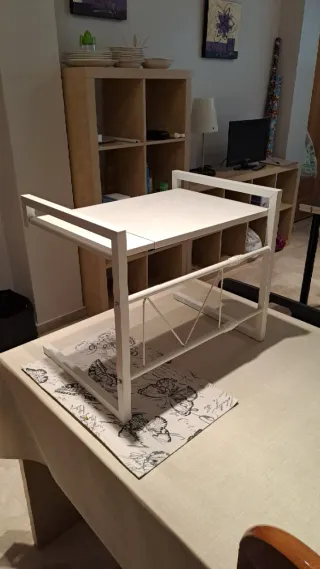 Mesa de comedor/cocina IKEA VIHALS en perfecto estado. Su diseño moderno y color blanco la hacen muy versátil. Medidas: 120/180 x 74 cm. Muy fácil de extender. Las patas quedan siempre en las esquinas de la mesa, incluso cuando está extendida, de modo que el espacio de debajo se puede aprovechar mejor para poner sillas. Cuando no se utiliza, el tablero de extensión se guarda debajo del tablero de la mesa. La estructura inferior de acero con revestimiento en polvo de alta resistencia proporciona una base estable con resistencia al óxido y la corrosión, lo que garantiza su durabilidad a largo plazo.