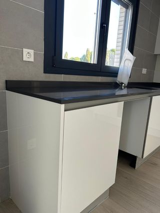 Cocina a estrenar totalmente equipada y nueva en primeras calidades. Desmontada y embalada por módulos. Encimera Consentino, armarios, fregadero, horno, vitro y campana. Armarios laminado brillo alta presión, canteado a 4 lados efecto crirstal. Grueso 20.5mm. Fondo 60cm. Encimera 60cm ancho, altura regulable 90-95cm, largo 3.08m x 2.56m en dos piezas. Se puede montar solo una. ❌Vitrocerámica (VENDIDA) Fregadero BE-40.40. Acero inoxidable 18/10 Horno Teka HBB 435 60cm. 3 funciones + grill y 72L de capacidad. Campana Teka GFG 2 filtro acero inoxidable con luz led