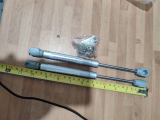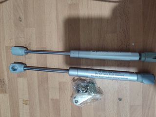 Vendo dos amortiguadores de mueble en color plata - Incluyen soportes de montaje. - Ideales para muebles o puertas. - Medidas en fotografías -nunca usado