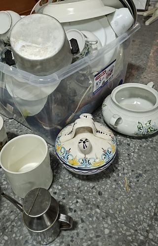 Conjunto de vajillas de cerámica diversas, muchas con dibujos o estampados florales. La mayoría de las piezas pertenecen a diversas colecciones sin orden ni concierto. Recogida en Valdemoro. Más muebles y apliques en mi perfil.
