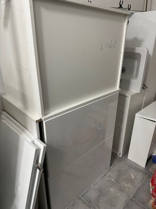Conjunto de muebles de cocina en acabado blanco brillo. Muebles disponibles: - Mueble de 90 cm x 60 cm de fondo (situado abajo a la izquierda), con dos puertas. - Gavetero de 60 cm x 60 cm de fondo (situado abajo, con tres cajones). - Dos muebles de 60 cm x 60 de fondo (situados abajo), una única puerta. - Mueble 60 cm x 45 cm de fondo (situado en la parte alta) completo, una puerta. - Tres puertas de muebles 60 cm x 45 cm de fondo. SOLO PUERTA. (Situadas arriba) - Dos puertas para mueble de 90 cm x 45 cm de fondo (son dos puertas de 45 cm cada una), situadas arriba. Disponible también encimera. Ver anuncio. Cocina completa: 800 €