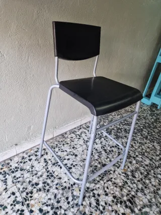está nueva, no se le ha dado ningún uso más que para ponerle cosas encima😅. A recoger en Fuenlabrada - Patas metálicas plateadas. - Asiento y respaldo de plástico azul..