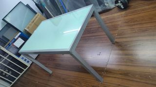 Conjunto de mesa redonda de CRISTAL TEMPLADO de 120 cm de diámetro + 4 sillas grises. Para cocina o comedor. La base de las mesas tiene algunas rayas del uso. Tanto la mesa como las sillas se desmontan ( la mesa se entrega desmontada) La mesa pesa alrededor de los 25 kg Mesa: 75 € Sillas: 75 € Conjunto: 150 €