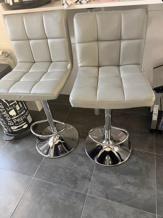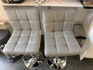 Conjunto de dos sillas de cocina con acabado en piel sintética. Son regulables en altura para mayor comodidad. - Diseño moderno y elegante. - Base metálica cromada.