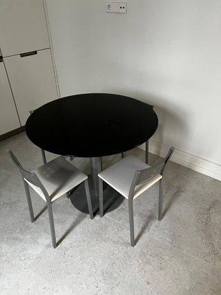 Mesa redonda negra y 4 sillas