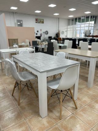 680*558*196 ☎️ Mesa de Comedor Moderna Nueva – Estilo Nórdico | Con o Sin Sillas Se vende mesa de comedor moderna totalmente nueva, con diseño elegante y minimalista ideal para salón, cocina o comedor. Combina estructura blanca con tablero efecto cemento. ✅ Mesa robusta y resistente ✅ Diseño moderno estilo nórdico ✅ Ideal para 4-6 personas ✅ Producto nuevo a estrenar 💰 Precios: • Mesa sola: 70€ • Mesa + 4 sillas modernas: 134€