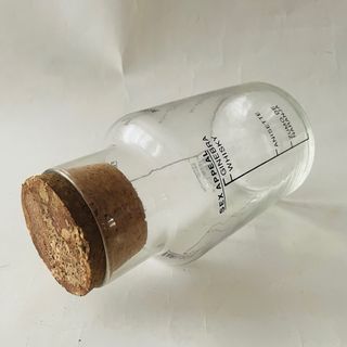Botella / frasco de cristal transparente para bar doméstico, con recetas de cócteles impresas en el vidrio: Alexander, Flying Dutchman, Bariloche y Sex Appeal. Pieza decorativa típica de los años 70, ideal para amantes de la coctelería vintage o para decorar un mueble bar. No tiene marca en la base. Tapón de corcho original. Medidas y peso: • Altura (sin corcho): 14,5 cm • Diámetro de la base: 8 cm • Diámetro de la boca: 5 cm • Peso: 253 g En buen estado general, con signos normales del paso del tiempo. Ideal como objeto decorativo o colección.