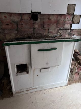 Cocina económica de la marca Orbegozo. - Color blanco con detalles en verde. - Fabricada en metal Aunque en la foto no salgan todas las piezas, no le falta ninguna. Tiene hasta el bombo calentador de agua.