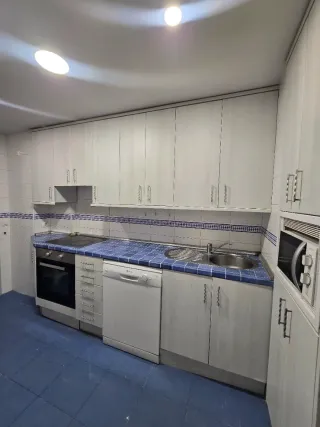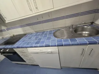 Conjunto de cocina con muebles y electrodomésticos. - Encimera con azulejos azules. - Armarios superiores e inferiores. - Electrodomésticos integrados.( Horno y microondas) - interesados se encargan de venir y desmontarsela y llevársela