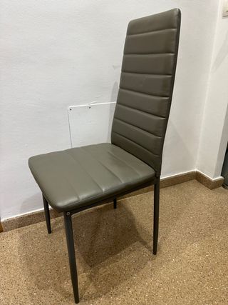 Se venden dos sillas de diseño. Son de metal, color plateado, y tienen un estilo elegante y minimalista. - Ideales para una cocina o barra de bar. - Se encuentran en buen estado, con señales normales de uso. - Se venden juntas.