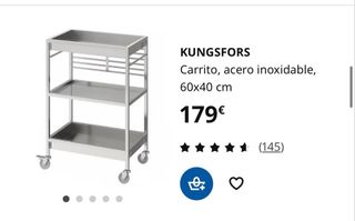 Carro de cocina de la marca IKEA, con estructura de metal y bandejas de acero inoxidable. - Dos bandejas amplias. - Ruedas para fácil movilidad. - Diseño moderno y funcional.