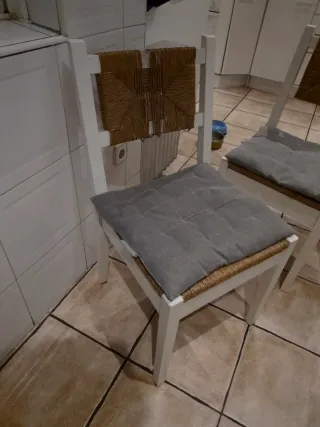 Sillas de cocina blancas y mimbre