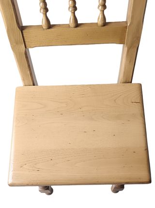 Conjunto de mesa y cuatro sillas de madera maciza de pino. Ideal para comedor o cocina. - Mesa de madera de pino. - Cuatro sillas de madera de pino.