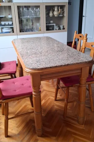 Mesa y 4 Sillas Cocina Madera y Granito