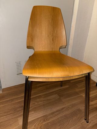 Silla moderna con un diseño elegante, ideal para tu salón o cocina. Fácil limpieza. Tengo 4 unidades Precio unidad, las 4 sillas 80€ - Asiento cómodo. - Patas de madera resistentes. - Combinación de colores neutros.