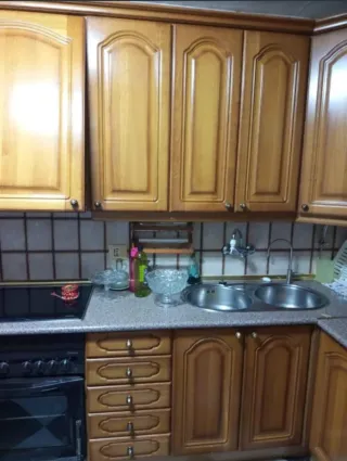 Conjunto de muebles de cocina con un diseño elegante y funcional. - Acabado en madera cálida. - Detalles en metal. - Combinación de puertas y cajones para almacenamiento. Se vende sin electrodomésticos. Muebles sueltos a precio negociable