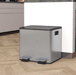 Pequeño golpe parte inferior derecha!!! (Foto) Práctico cubo de basura con dos compartimentos independientes. Su diseño moderno se adapta a cualquier cocina. - Mecanismo de pedal para apertura. - Acabado plateado y negro. Ref: 851-033v04sr