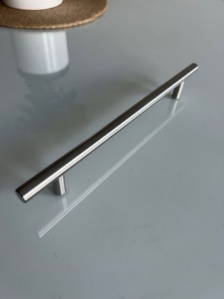 Modernos tiradores de acero inoxidable, ideales para dar un toque elegante a tus armarios o muebles de cocina. Su diseño minimalista se adapta a cualquier estilo. - Material: Acero inoxidable. - Acabado: Pulido. - 10 tiradores