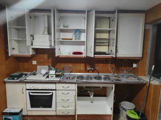 Muebles cocina. Se venden tambien sueltos, consultar precio.Sin electrodomesticos, envio mas fotos si estas interesad@. Precio de lo que queda si lo llevas todo. Especiero ancho de 15cm con 2 estantes , cajonera 4 cajones de 30cm de ancho, armario de fregadero de 60cm, armario esquinero 2 puertas 7 estanterias: 2'34 de alto, 30 de ancho, 56 fondo. Puedo llevarlo si es necesario con suplemento!