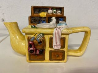 Preciosa tetera vintage con forma de mueble de cocina. Ideal para coleccionistas. - Diseño único y detallado. - Perfecta para añadir un toque especial a tu cocina. - Pieza decorativa de cerámica.